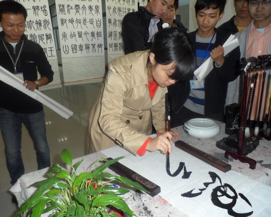 11月16日,由安庆师范学院(菱湖校区、龙山校区)、安庆职业技术学院和安庆医药高等专科学校三所高校书画类团体共同发起的“首届宜城高校大学生书画联展”在我院图文信息中心一楼大厅举行。