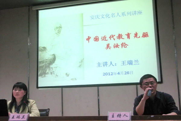 本次讲座是本学期“基于科学人文艺术融通的学生素质拓展体系构建”示范建设项目下“安庆文化名人系列讲座”十场中的第六讲。