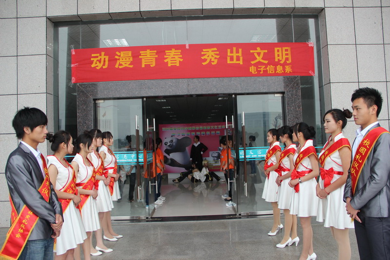 5月23日下午,由学生处团委主办、电子信息系承办的院第四届大学生校园文化艺术节之动漫艺术作品展在院图文中心一楼报告厅拉开帷幕。院领导江洪、孙晓峰、张旺牛、余祖文、施运华、毕明生、方天祜,院党委委员、办公室主任吴登明到场观看了作品展。院相关处室负责同志和电子信息系近500名师生一同观看了作品展。