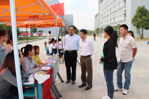 12日,毕明生副院长在学生处(团委)负责人及相关老师的陪同下察看了招新现场。毕明生副院长饶有兴趣的观看了一些团体的特色表演,并询问了相关学生团体的发展现状、日常活动开展、拟招会员人数等问题。重点询问了今年新增的3个团体的发展现状,活动开展情况。他还对院级学生团体活动的开展、学生团体的发展提出了指导性意见。