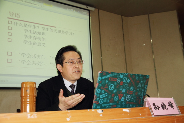 12月5日下午3点,院长孙晓峰教授在图文信息中心一楼报告厅为学院“青马工程”暨第七期学生干部培训班582名学员作了题为《健康成长 立志成才 走向成功》的专题讲座。