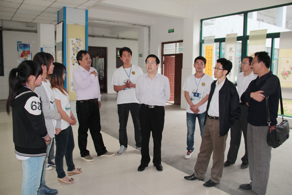书法作品在选送懒悟艺术馆前在校内进行为期三天的展览,院长孙晓峰、副院长毕明生到场进行了参观,并与同学进行了交流。