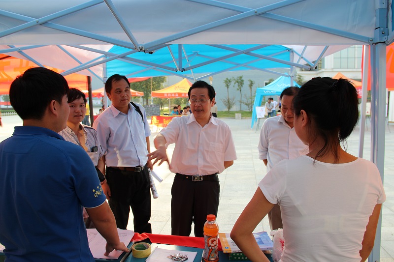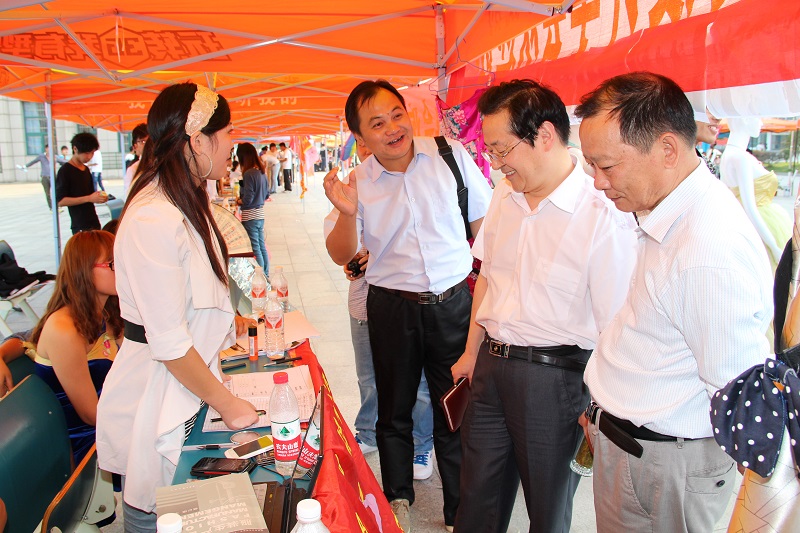 招新期间,院党委书记江洪、院长孙晓峰、副院长毕明生在学生处(团委)负责同志的陪同下察看了招新现场。院领导饶有兴趣地观看了一些团体的特色表演,并询问了学生团体的发展现状、日常活动开展、拟招会员人数、活动开展过程中存在的困难等。院领导对学生团体活动的开展、学生团体的发展提出了指导性意见,要求相关职能部门就进一步加强学生团体建设提出意见,促进我院学生团体建设,丰富学生第二课堂。
