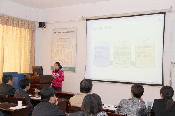 参加此次集中考评的15名优秀辅导员候选人是在个人总结、学生测评、系部考评的基础上产生的。参评的专职辅导员个个展示精彩的PPT,向考评组汇报了一年来的学生教育、管理、服务各项工作,介绍完成工作任务情况,提炼工作亮点,畅谈工作感悟,总结工作经验,回顾存在不足,展望工作愿景,并且与大家分享了工作中的感人故事。