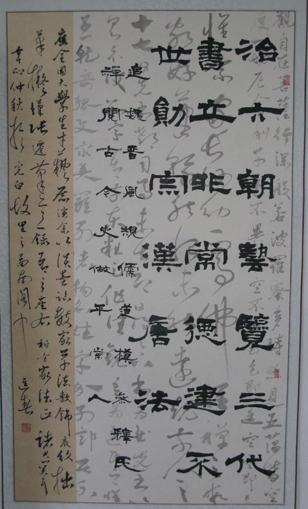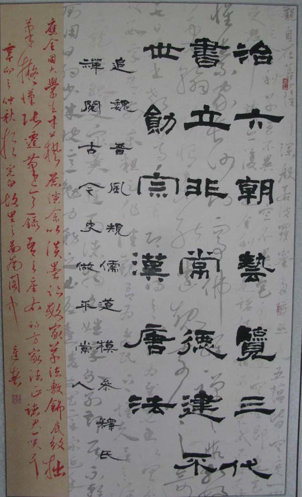 王柏翠老师指导、金庆春同学创作书法《治艺轴》(一)获省一等奖