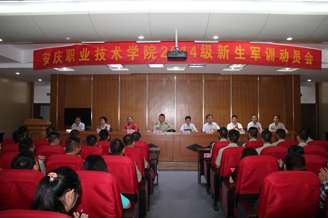 我院高度重视新生军训活动, 9月14日上午8点,学院在图文信息中心三楼报告厅召开了2014级新生军训动员大会。院迎新与军训工作领导小组副组长、副院长毕明生出席了会议,承训的武警安庆市支队41名教官,各系部党总支副书记、团总支书记、全体新生辅导员班主任以及新生代表共200余人参加了动员会。