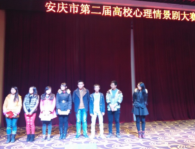 经过两个多小时的角逐,安庆医药高等专科学校大学生心理协会带来的表演《不屈的生命》夺得此次比赛的冠军,安庆师范学院的《钉子 》、 安庆职业技术学院的《心在这一刻融化》分列亚军和季军。另外,我院的《谁是最可爱的人》获得最佳表演奖,《梦醒》获得优秀奖。