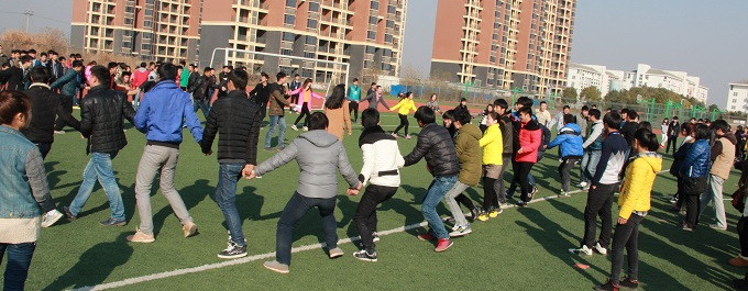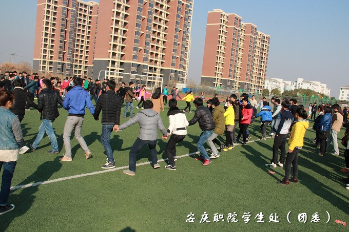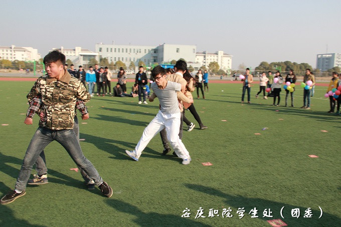 活动还没开始,体育场上就挤满了前来参加活动的同学们,个个磨拳擦掌,蓄势待发,大家的脸上都写满了笑意,热闹的场面打破了冬日的宁静,处处洋溢着火热的激情。集体游戏“爱的抱抱”挑战了大家的速度;“青蛙跳”、“保卫大战”和“正话反说”考验大家的反应能力;“头脑风暴(谜语竞猜)”展现大家的智慧;“背对背拥抱”考验大家的技巧和合作能力 。游戏活动不仅提升了同学们相互协调、团结互助的意识,更让大家深刻理解自己作为集体的一员,怎样做才能使集体取得更好的成绩。呐喊声、加油声、鼓掌声充满整个现场,欢乐、温馨、和谐成了贯穿整个游园会的主旋律。同学们相互祝福,相互祝愿,共同感受安职院大家庭的温暖,在一片笑语盈盈中,带着对学习、对生活热切的希冀,迎接充满希望的2015年。