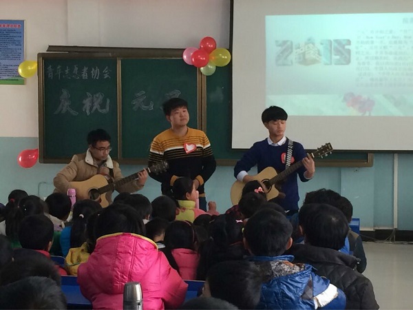 12月31日,我院青年志愿协会组织60多名志愿者前往老峰镇第三小学,与那里的同学们留守儿童共度元旦。