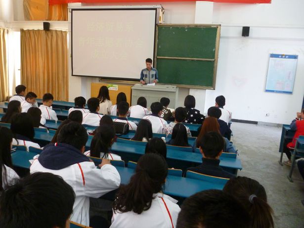会议分三项议程。首先是奏团歌,全体起立。其次是主持人宣读志愿者分会管理制度与服务内容,强调了三点:一是一起服从指挥听命令;二是无偿服务学校与社会;三是会内所有人员有选举权和被选举权,并确立总目标是全体成员团结一致,真正服务社会,无偿为社会提供一切有限的力量,为协会发展做出努力,无偿服务于一切需要帮助的人。大会第三项是全体成员宣誓:我愿意成为一名光荣的志愿者。我承诺:尽己所能,不计报酬,帮助他人,服务社会。践行志愿精神,传播先进文化,为建设团结互助,平等友爱,共同美好社会贡献力量。