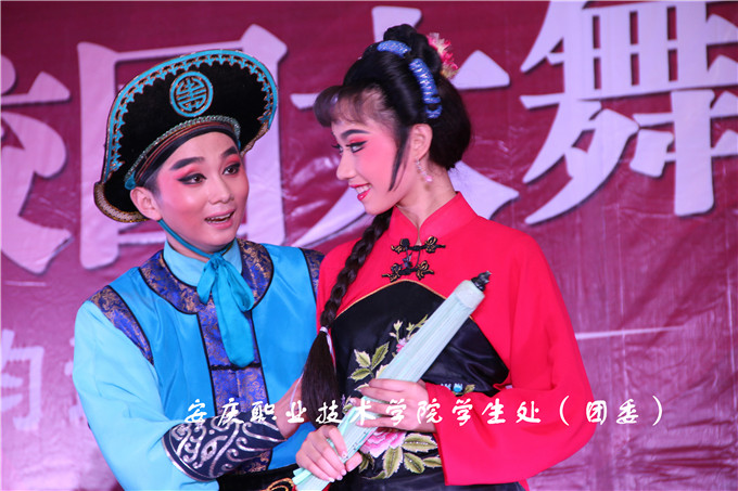 整场演出以独具特色的传统折子戏为主,兼顾经典联唱、黄梅歌等,充分展现了浓郁的安徽地域文化特色。晚会在优美的开场舞中拉开了序幕,紧接着黄梅戏优秀传统小戏《夫妻观灯》、《闹黄府》将徽风徽韵表现的淋漓尽致,新编小戏《推车赶会》的演员们用安庆方言将地方韵味表现得淋漓尽致,赢得满堂赞誉。经典剧目《白蛇传》选场《断桥》、《荆钗记》选场《投江》等精彩节目轮番上演,优美的唱词和演员完美的表演赢得现场观众的阵阵掌声,让广大师生充分领略了传统文化黄梅戏的独特魅力。特别是国家一级演员吴美莲和刘国平表演的《春香传》选段《爱歌》和《刘海戏金蟾》选段《十五的月亮为谁圆》更是将演出活动推向高潮。最后,演出在黄梅歌《山野的风》的掌声中落下帷幕。