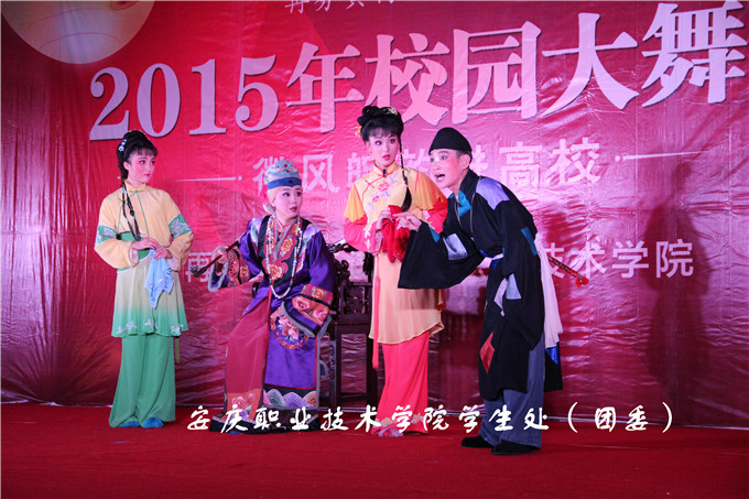 孟夏之夜邂天仙,黄梅之花开安职。5月31日晚,我院图文信息中心一楼报告厅灯火辉煌,群星熠熠,由安徽省委宣传部、安徽省文化厅、安徽省教育厅主办,安庆再芬黄梅艺术剧院承办的2015年“校园大舞台——徽风皖韵进高校活动”之安庆职业技术学院专场演出在这里隆重举行。院党委委员、副院长毕明生,相关部门负责人,各系部党总支副书记、专兼职辅导员和学生代表700人观看了整场演出。