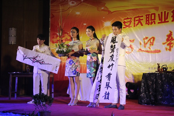 晚会在舞蹈《活力健身操》中拉开帷幕,炫彩的灯光下,舞者们活力四射,为晚会增添了热烈的气氛。吉他弹唱《原创三部曲》、服装秀《小时代》、黄梅戏对唱《对花》逐渐将晚会推向一个小高潮。静谧柔美的朗诵《青春的声音》、融传统书法、绘画、插花、茶艺于一体的艺术表演《茶韵书馨》又将大家带到了另一个世界。拉丁舞《舞动青春》舞出了青春的韵律,跳出了时代的脉搏;章杰义老师的一首《圆你一个梦》委婉亮丽,更是给现场观众带来了一场听觉盛宴。话剧《纳新》用意想不到的剧情、精湛的表演,赢得了同学们阵阵的欢呼,掌声不断、高潮迭起;整场晚会在乐队高亢激越的《再见,杰克》声中完美落幕。