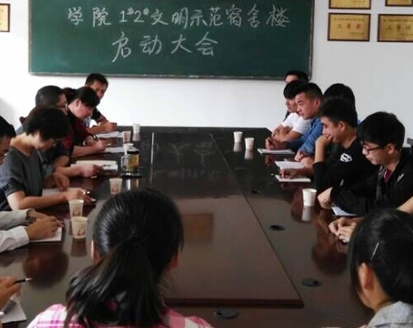 为响应学院号召,创建“文明、整洁、和谐、安全”的育人环境,积极推进学生宿舍管理工作,规范学生在宿舍的行为习惯,促进学生自我管理能力的提升,近日院学生会宿管部门启动1栋、2栋宿舍楼文明示范创建试点工作,邀请学生处副处长桂骏老师以及机电系、建工系分管学生工作负责同志到会指导。