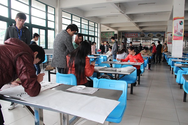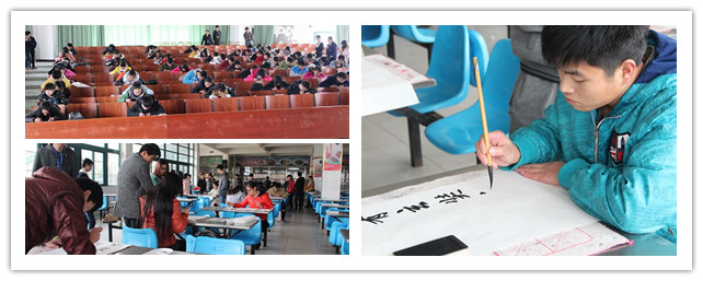 为弘扬中国传统书法文化,丰富校园文化生活,11月25日,由院团委主办、逸风书法社承办的安庆职业技术学院2015年“迎新杯”现场书法比赛在图文一楼报告厅和食堂一楼餐厅举行。128名书法爱好者同学参加了比赛。
