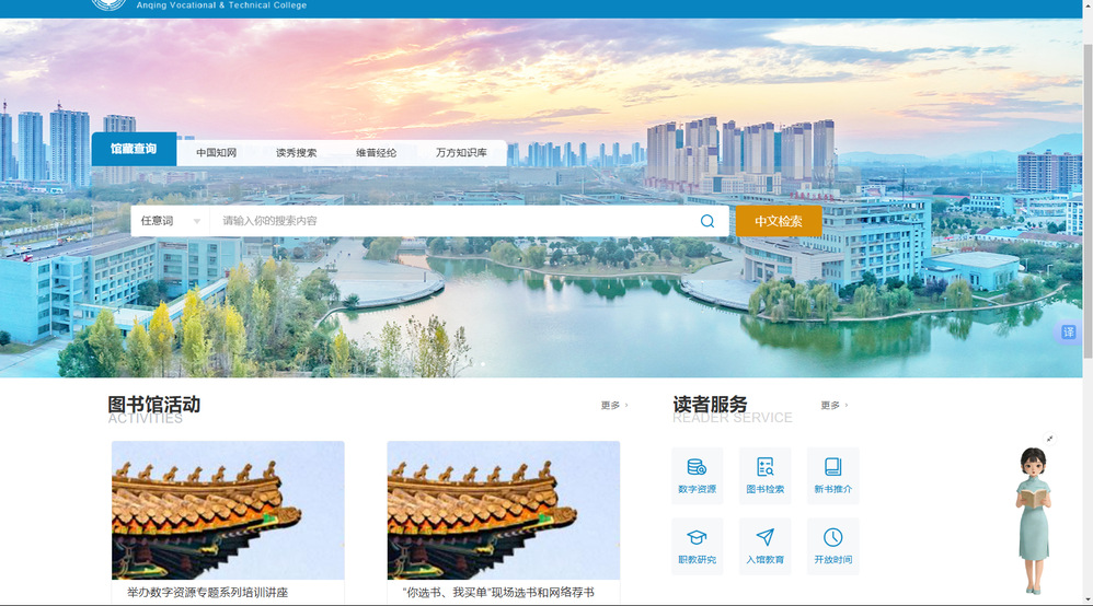为响应高等教育数智化转型号召,深化智慧图书馆建设,近日,安庆职业技术学院图文信息中心 AI 馆员(小安)正式上线,标志着该校图文信息服务迈入 “智能交互、精准响应” 新阶段,为全校师生提供全天候、个性化的智慧知识服务。