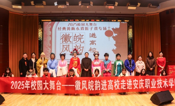 12月3日下午,由中共安徽省委宣传部、安徽省教育厅、安徽省文化和旅游厅联合主办,安庆职业技术学院与铜陵市艺术剧院有限公司携手承办的 “安徽省2025年校园大舞台——徽风皖韵进高校”系列活动,在我校图文报告厅一楼圆满落幕,我校共计400余名师生代表现场观看了精彩演出。