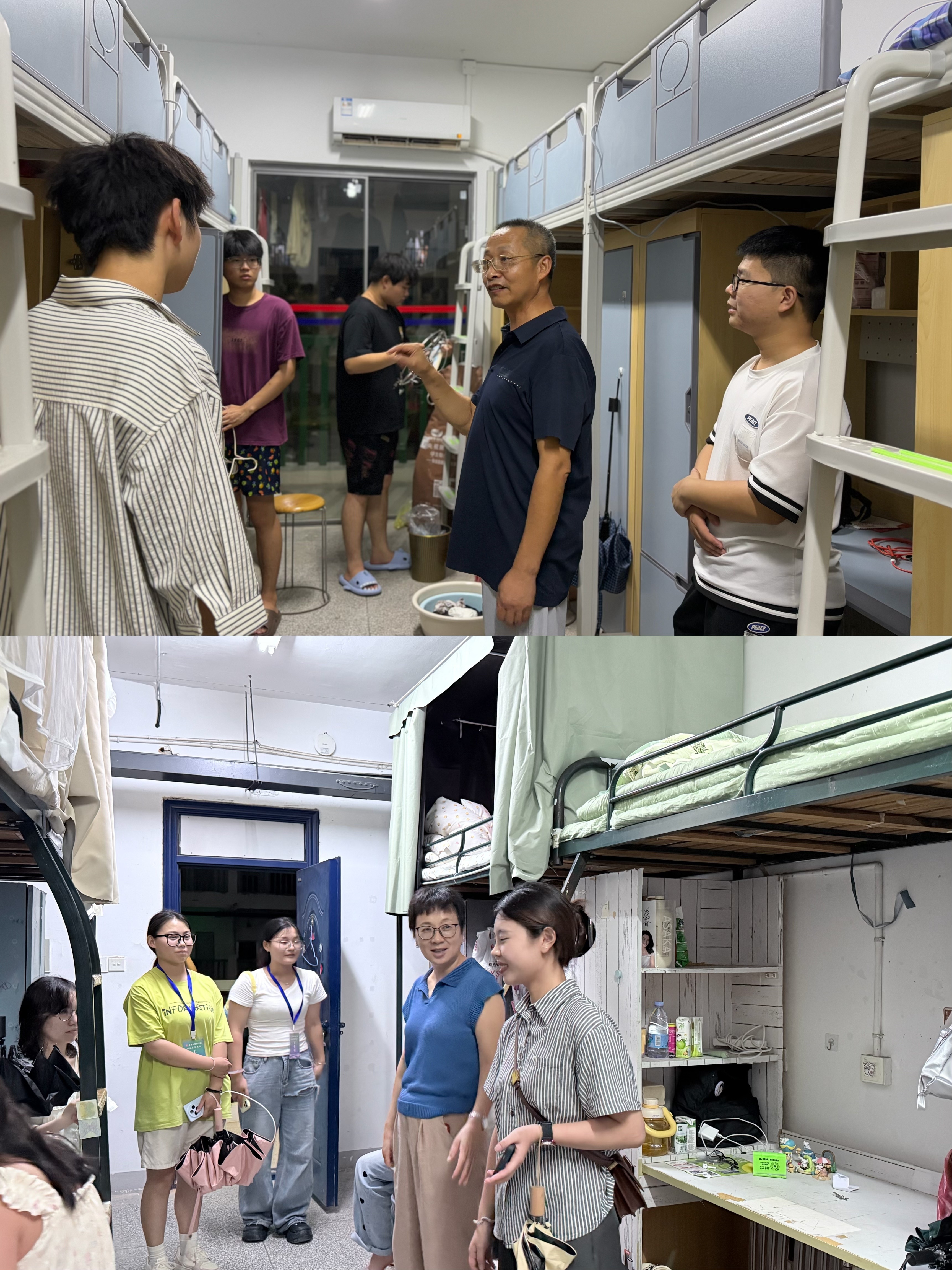 9月9日,学院领导带领25级专兼职辅导员走访寝室,亲切看望刚刚安顿下来的新同学。走访中,师生进行了亲切交流,细致询问了同学们的生源地、入学感受及生活适应情况,耐心解答了同学们提出的问题。他们特别叮嘱新生,要尽快转变角色,适应新的学习和生活环境;同学之间要相互关心、互相帮助,共建和谐友爱的宿舍文化;同时要切实提高安全防范意识,尤其要警惕各类电信网络诈骗,保护好人身与财产安全。