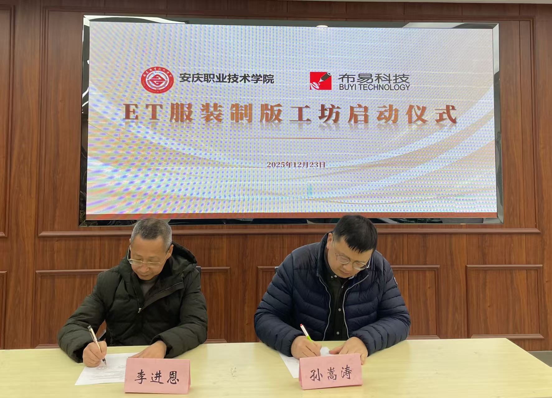 活动上校企双方就合作事项进行了深入交流,李进恩院长表示:安庆职业技术学院作为一所扎根地方、致力于服务区域经济社会发展的职业院校,始终坚持产教融合、校企合作的办学路径,紧密对接产业需求,优化专业布局,深化教学改革。此次“ET服装制版工坊”的建立,正是学院积极响应国家职业教育改革号召,主动拥抱服装产业数字化浪潮,深化教育教学改革的一项重要举措和实质性成果。希望同学们珍惜这个宝贵的平台,主动学习、大胆实践、勇于创新,努力掌握数字化时代的“新裁缝”技艺,将手中的鼠标和数字笔,化作勾勒时尚蓝图、创造美好生活的利器,为自己职业生涯的辉煌起步奠定坚实基础。布易科技校企合作负责人孙嵩涛阐述了校企合作的发展规划,作为中国服装CAD行业的佼佼者,布易科技期望与服装专业在数字化设计、智能制版、生产管理等多个领域展开深度合作,双方携手开展服装技术人才培养,实现学生“入学即入行”的精准培养目标。