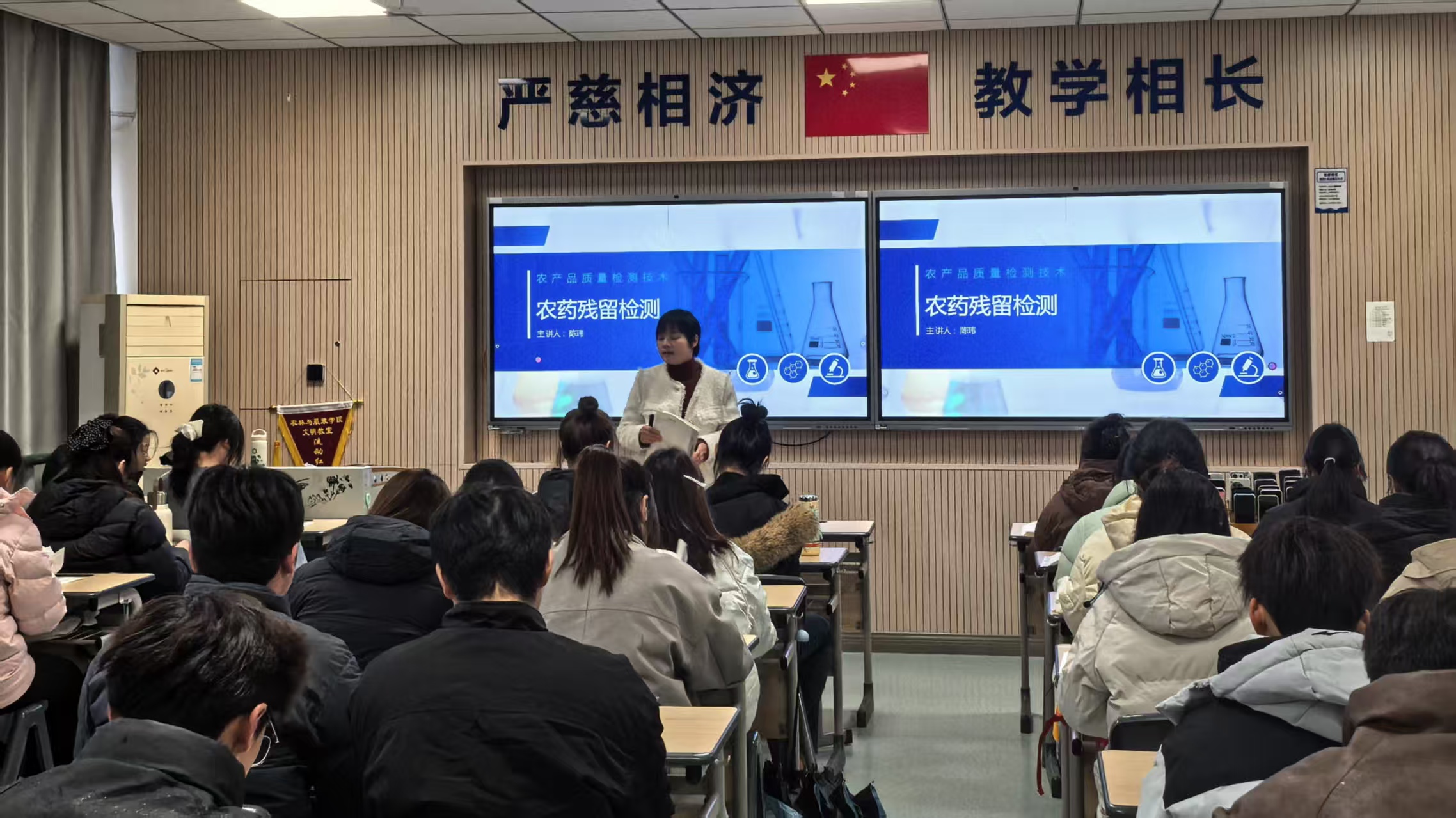 2025年12月23日,专业骨干教师陈玮老师主讲了《农产品质量安全检测技术》课程中的“农药残留检测”模块理论课。课程内容精准对接质量安全控制环节,贯通产业链培养目标。课堂上,陈玮老师以扎实的专业知识、清晰的逻辑脉络,系统讲解了农药残留检测的原理、方法与标准,并结合案例引导学生深入思考,课堂氛围严谨而活跃。专业群内部分教师到场观摩。