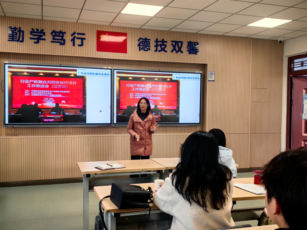 日前,“行业产教融合共同体标杆培育工作推进会(江苏站)暨全国园林绿化行业产教融合共同体2025年工作推进会”在苏州农业职业技术学院国际交流中心召开。我校作为全国园林绿化行业产教融合共同体副理事长单位受邀参加了此次会议。会议由中国教育发展战略学会产教融合专业委员会副理事长兼秘书长李桂云主持,中国教育发展战略学会产教融合专业委员会理事长刁庆军到会致辞。“全国园林绿化行业产教融合共同体”等8个首批标杆单位就共同体工作成效与举措、资源建设模式与经验等方面进行了案例展示分享,与参会代表对当前产教融合建设发展的困惑及痛点、难点进行了剖析和对策研讨。