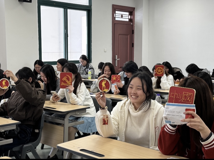 活动现场,党员教师手把手指导学生进行缠画创作。从丝线选材、图案设计到缠绕技法、造型固定,教师们耐心讲解、示范操作,学生们认真聆听、反复练习。师生共同围绕红色主题进行创作,将思政元素融入艺术设计。